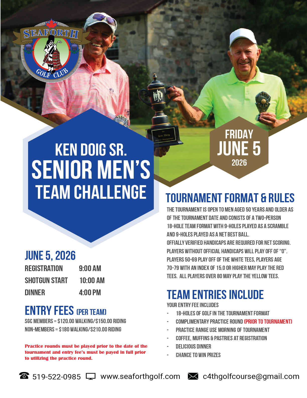 To enter a team email c4thgolfcourse@gmail.com or call the pro-shop at 519-522-0985 (Note clubhouse hours are limited at the moment but if you leave a message some one will get back to you).